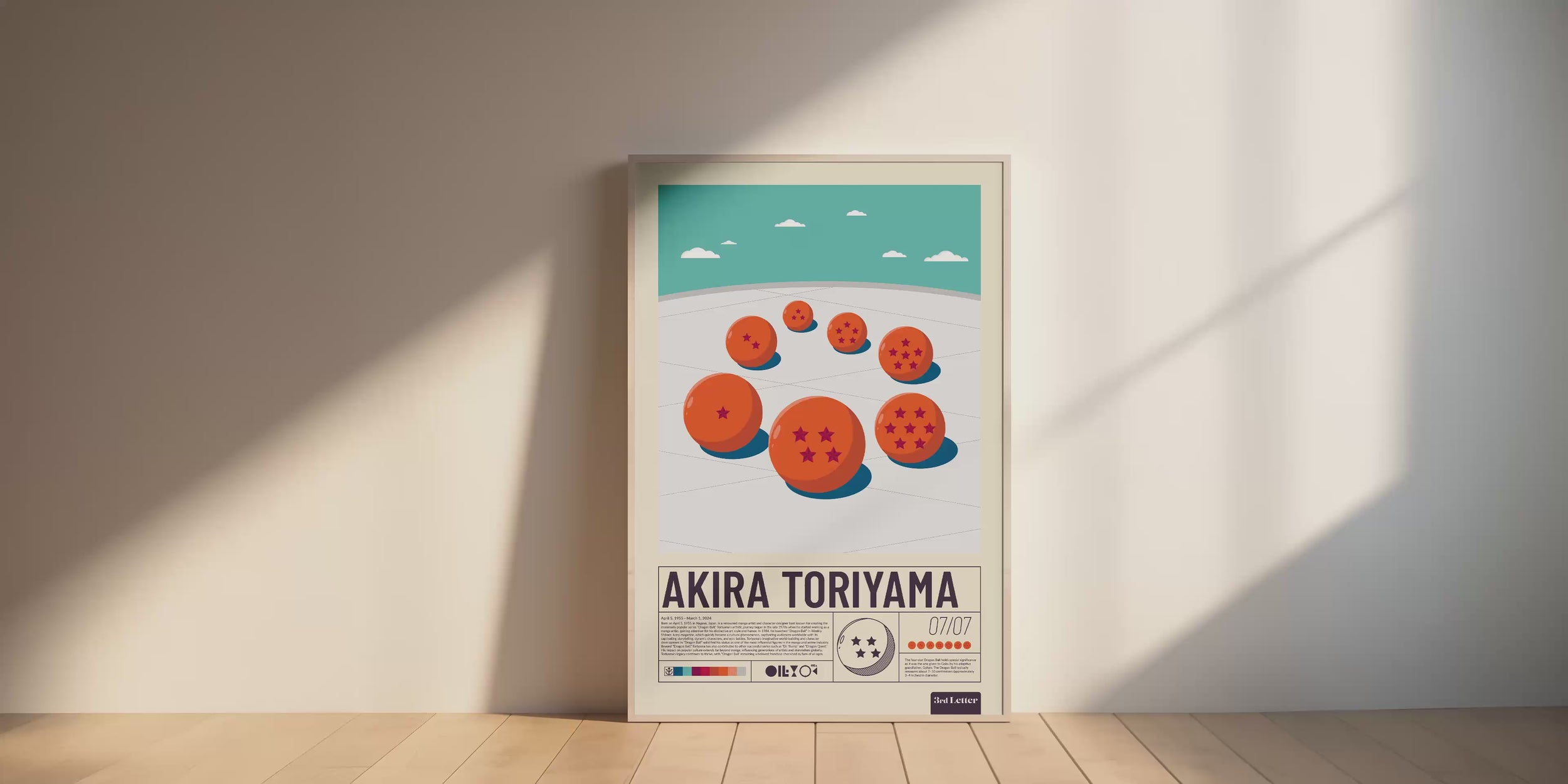 This vintage poster features the Black Star Dragon Balls from Dragon Ball GT. The illustration showcases the seven mystical orbs, each with a unique number of black stars, set against a red background. The description at the bottom explains that these Dragon Balls are similar in size to Earth's Dragon Balls and possess the ability to summon Ultimate Shenron, who can grant any wish. However, unlike regular Dragon Balls, they scatter across the universe after use, and failing to return them to their original planet within a year leads to the planet's destruction. The poster highlights the power and peril associated with these powerful artifacts.